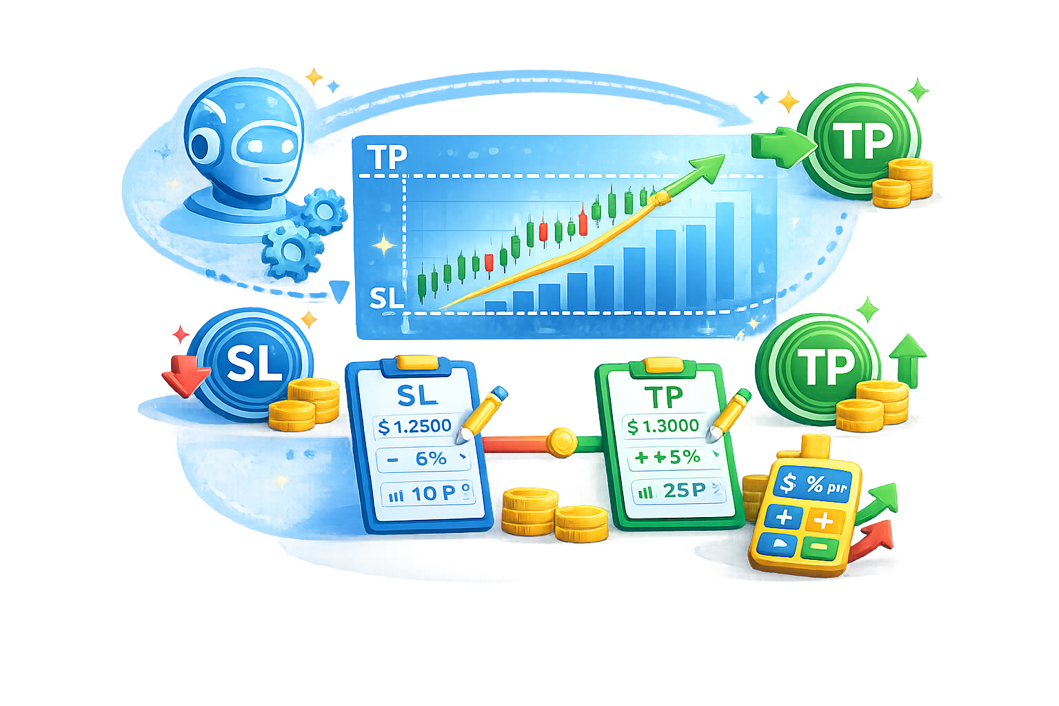 Choose between AI Stop Loss and AI Take Profit that automatically optimize your trades, or set Manual Stop Loss and Manual Take Profit with your own custom values in percentage, currencies, or pips.
